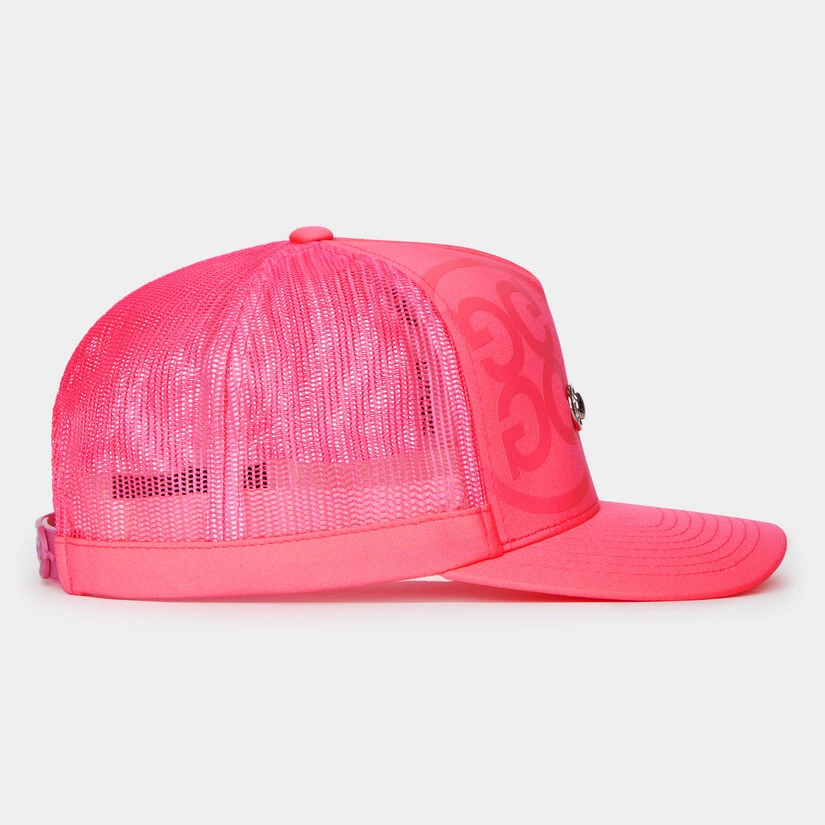 THE G LINK INTERLOCK KNIT TRUCKER HAT FEATURES A BUILT-IN SWEATBAND WITH A BREATHABLE INTERLOCK KNIT AND MESH BODY, PERFECT FOR HOT DAYS ON THE GREEN. PLUS, WITH AN ADJUSTABLE SNAPBACK CLOSURE, YOU’LL HAVE THE BEST FIT FOR ALL DAY PLAY. G4AS23H84