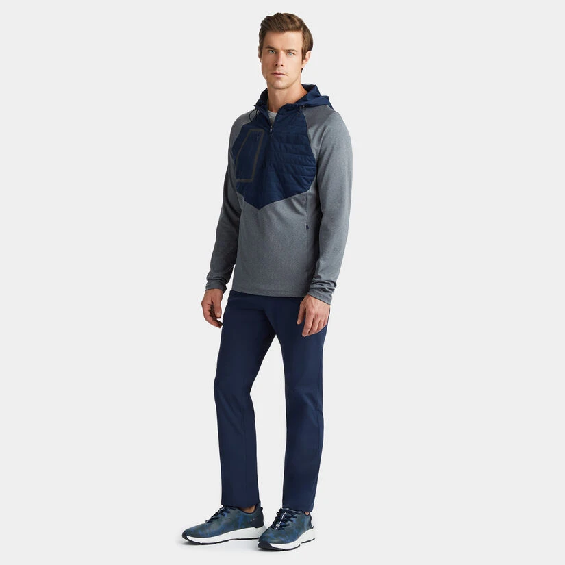 THE HOODED TECH INTERLOCK QUARTER ZIP PULLOVER IS THE PERFECT SPORTY STYLE TO THROW OVER YOUR POLO ON CHILLY MORNINGS. MADE WITH INCREDIBLY SOFT MOSSED BACK INTERLOCK FOR EXTRA WARMTH. G4MA23O33