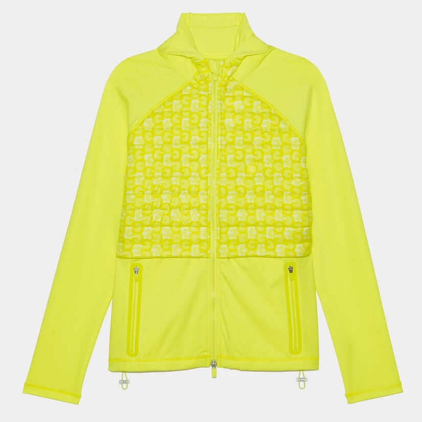THIS HYBRID G’S TECH JERSEY PULLOVER JACKET FEATURES NYLON QUILTED TAFFETA FOR PREMIUM TEMPERATURE CONTROL, MOCK NECK AND HOOD, QUARTER LENGTH ZIPPER, AND BUNGEE PULLS FOR CUSTOMIZABLE PROTECTION AGAINST THE ELEMENTS. AN EXCEPTIONAL ALLY IN UNCERTAIN WEATHER, THIS JACKET WILL BE YOUR FAVOURITE GO-TO STYLE TO KEEP YOU WARM ON THE COURSE SO YOU CAN FOCUS ON YOUR GAME. G4LS23O58