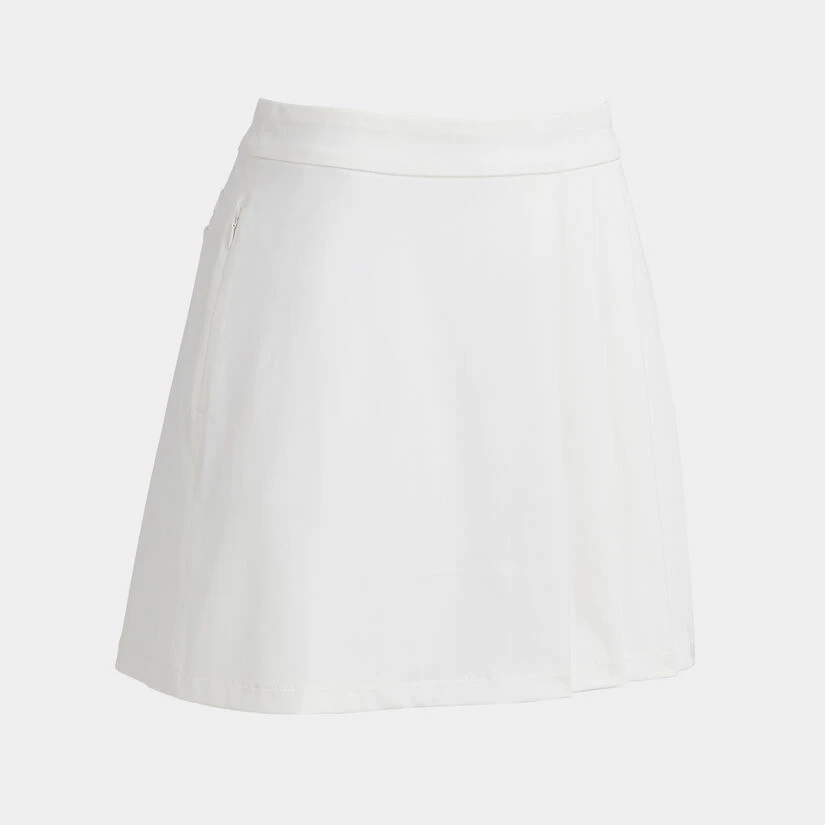 FEEL COMFORTABLE AND CONFIDENT IN THIS ITERATION OF OUR POPULAR SKORT LINE. MADE WITH SUPER COMFORTABLE NYLON STRETCH TWILL WITH BUILT IN SHORTS SO YOU CAN SWING WITH CONFIDENCE AND UNINHIBITED MOBILITY. THIS STYLE WILL ALSO ELEVATE YOUR STYLE GAME WITH UNIQUE SIDE PLEATS THAT TAKE ANY LOOK UP A NOTCH. PAIR IT WITH A SLEEVELESS POLO FOR THE COURT, OR ONE OF OUR ALL SEASON MERINO WOOL SWEATERS FOR THE COURSE. G4LS23B127