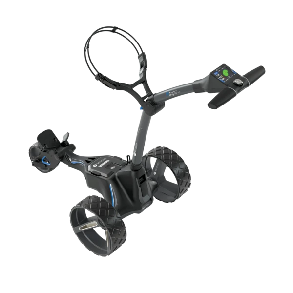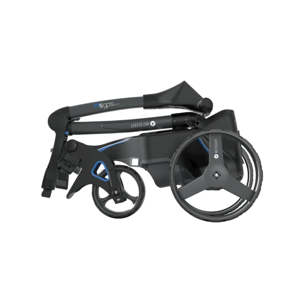 The M5 GPS DHC adds Downhill Control, an electronic parking brake and All terrain DHC wheels to the wide‑ranging features found on the compact‑folding M5 GPS ‘Smart Cart’. Includes FREE ACCESSORY STATION (worth $19.99)