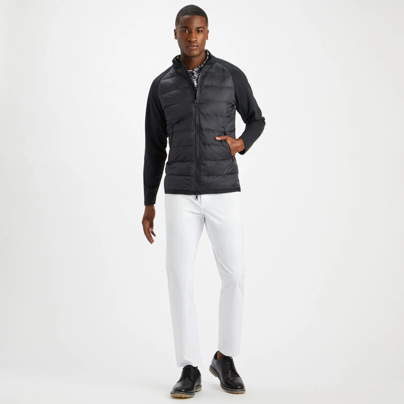 OUR TEAM OF DESIGNERS WORKED TO PERFECT THE PERFORMER JACKET TO BE YOUR NEW GO-TO FOR EXCEPTIONAL MOBILITY ON THE COURSE & ULTIMATE PROTECTION FROM THE ELEMENTS. ITS EXTREMELY LIGHTWEIGHT, SILKY, 4-WAY STRETCH FABRICATION PROVIDES SHIELDING FROM THE WIND & UNRESTRICTED MOTION, WHILE THE MOSSED INTERIOR SUPPLIES MAXIMUM WARMTH FOR COLD MORNINGS ON THE FAIRWAY. G4MF20O02
