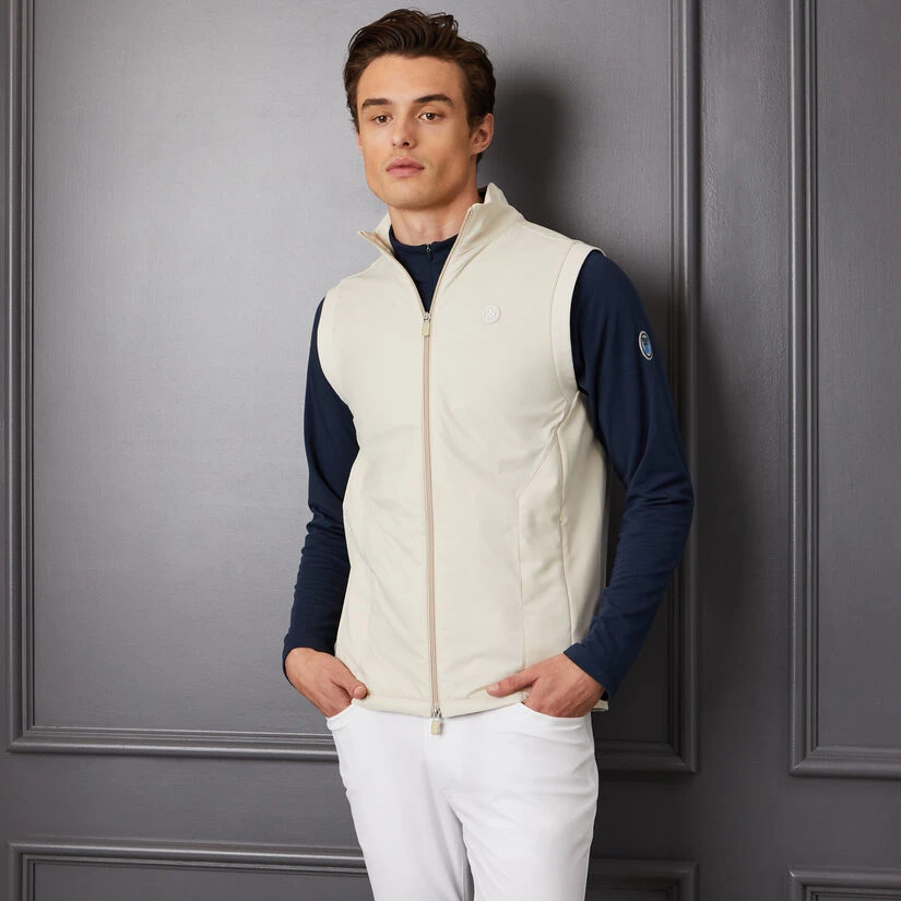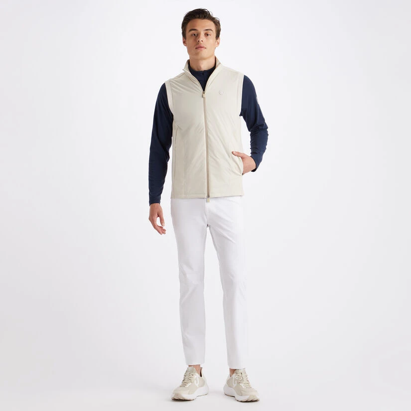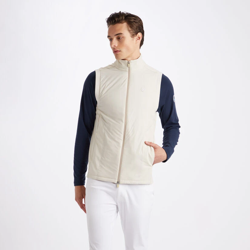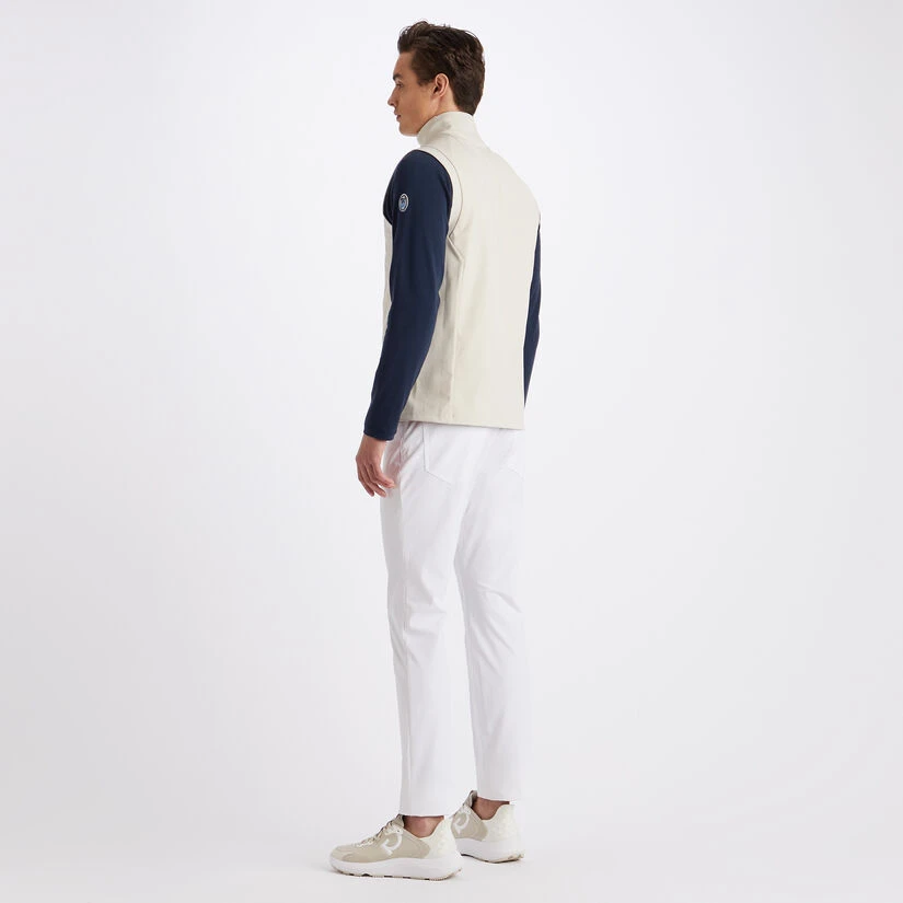 KEEP CONFIDENT ON THE COURSE WITH THIS LIGHTWEIGHT VEST, DESIGNED WITH A NYLON FRONT AND A MOSSED INTERIOR COMBINATION. MADE TO KEEP YOUR CORE WARM AND YOUR GAME ON POINT. G4MA23O49