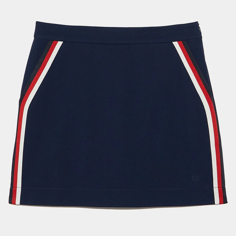 THE TUX LUXE 4-WAY STRETCH TWILL SKORT IS YOUR GO-TO FOR ANY OCCASION. DESIGNED WITH PERFORMANCE 4-WAY STRETCH WOVEN AND BUILT-IN SILKY TECH NYLON SHORTS, YOU’LL FEEL SECURE ALL DAY, NO MATTER IF YOU’RE SWINGING ON THE COURSE OR RELAXING IN THE CLUBHOUSE. FEATURING TRI COLOURED TAPING DOWN THE SIDES FOR AN ELEVATED LOOK. G4LS23B128
